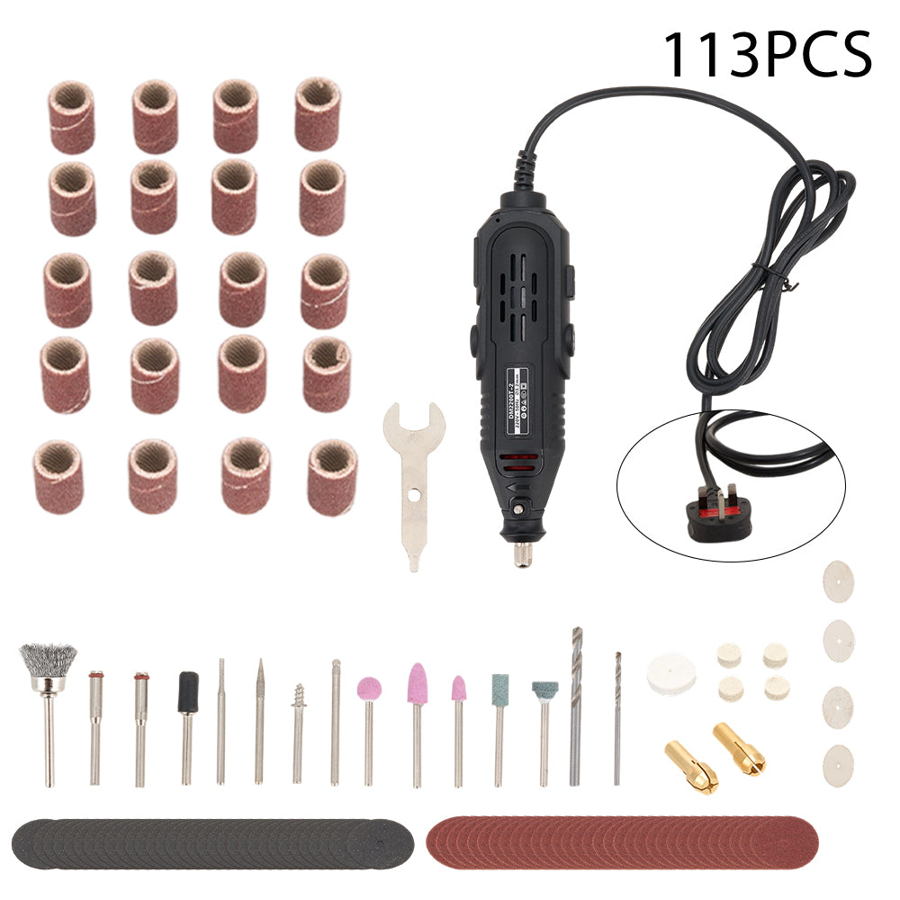 Tackle a variety of DIY tasks with this 113-piece Handheld Rotary Tool Set. Powered by a reliable 200W pure copper motor, it offers smooth, consistent performance for grinding, sanding, polishing, and more. 6-speed control offers precision, while the compact build ensures a comfortable grip. Whether you are a hobbyist or a professional, this rotary tool set offers everything you need in one.