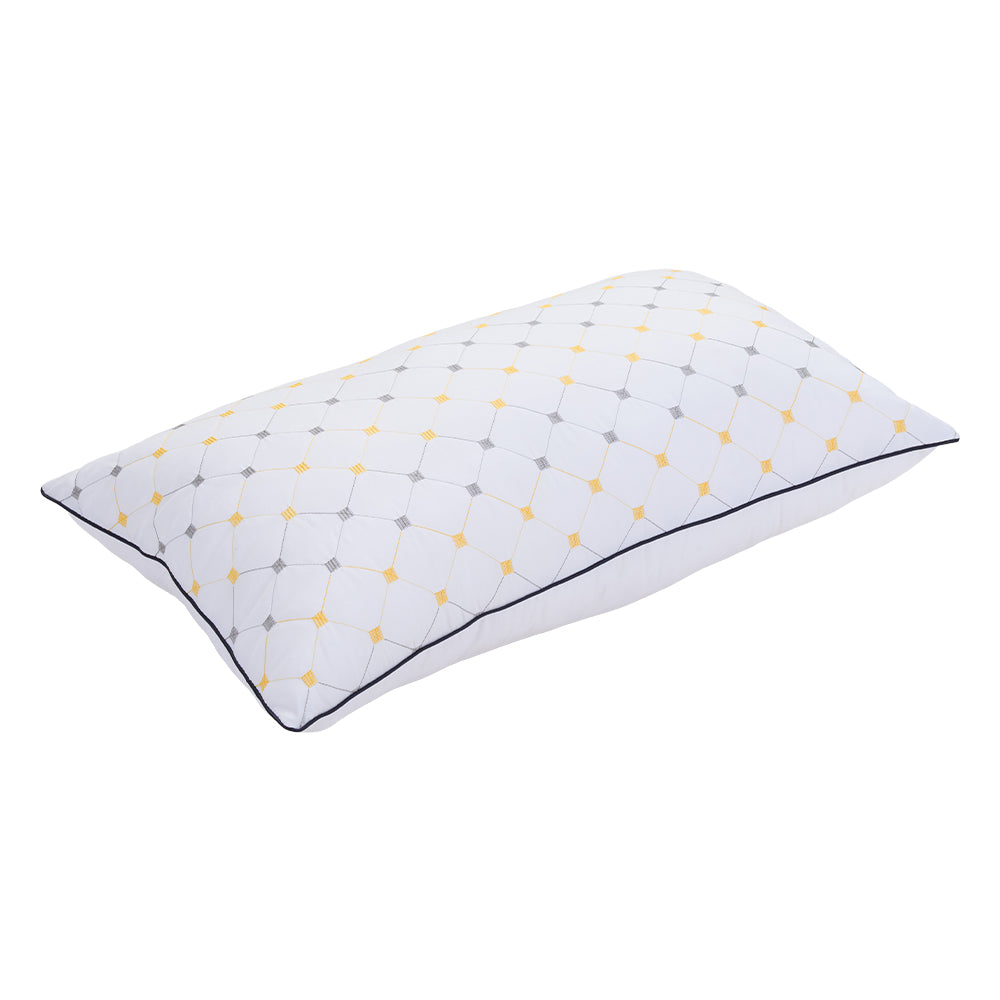 Sleep more peacefully and comfortably every night! This pillow insert features a clean white base with subtle yellow and grey geometric patterns—fresh, elegant, and versatile for any bedroom decor. The soft, skin-friendly polyester fabric surface is breathable and cosy, while the high-resilience filling contours naturally to your neck for optimal support. It has excellent resilience, returning to its original shape after use and resisting deformation. Whether you sleep on your back, side, or stomach, it provides balanced neck alignment to promote restful, healthy sleep.