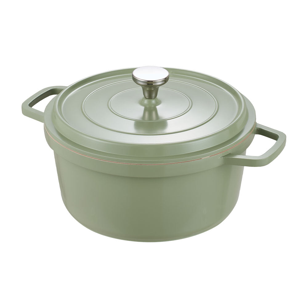 Crafted for modern home cooking, this cast aluminium cooking pot balances durability and performance. Wide loop handles provide a secure, comfortable grip, even with oven gloves, for safe handling on and off the hob. The flat, induction-ready base ensures efficient, even heating on gas, electric, and induction cooktops. Its deep, wide body reduces boil-overs during long simmers and hearty stews. A durable enamel exterior resists chipping and corrosion, while the premium non-stick interior ensures easy food release and effortless cleaning. Finished with a tight-fitting lid to lock in moisture and flavour, it is ideal for casseroles, soups, and braised dishes.