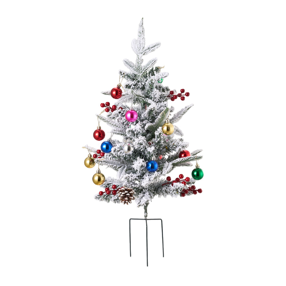Bring festive charm to your outdoor décor with this 2-pack of Christmas trees. Designed with sturdy metal tripod stakes, they insert easily into soil, planters, or floral foam for secure display in gardens, patios, or entryways. Each tree features vibrant baubles, red berry clusters, and realistic pinecones on snow-dusted branches for a magical winter look. Compact and weather-resistant, they are perfect for adding holiday cheer to your porch, front door, or garden—creating a warm, festive atmosphere all season long.