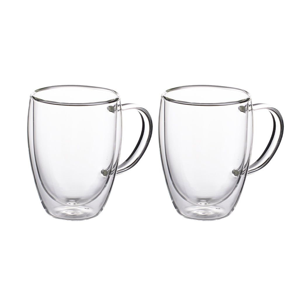 Enjoy your favourite beverages in style with this elegant double-walled glass coffee cup. Designed for both beauty and function, its insulating structure protects your hands from heat. The generous handle adds practicality, offering a comfortable grip. The gently curved shape ensures stability, making it less likely to tip over. Its transparent walls beautifully showcase the colour and layers of your coffee, espresso, or tea, enhancing your overall drinking experience.