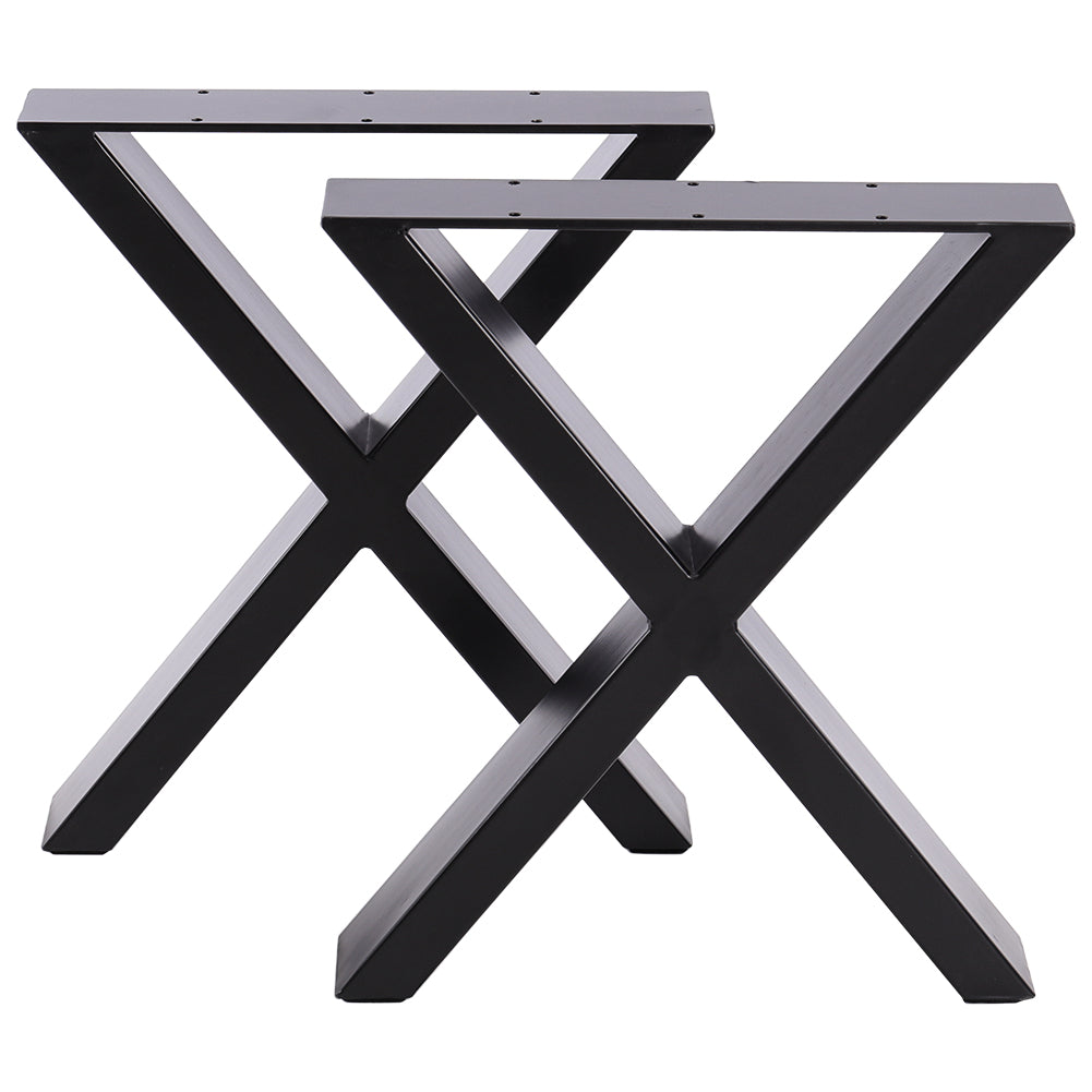 Mit einem modernen X-Form verleihen diese Tischbeine ihre Möbel eine schicke Hauch. Diese Konstruktion verhindert wirksam das Wackeln des Tisches. Selbst wenn schwere Gegenstände darauf abgestellt werden oder äußere Krafteinwirkungen auftreten, bleibt er stabil. Die Oberfläche der Eisenbeine ist mit schwarzer Lackbeschichtung versehen. Daher sind sie nicht leicht zu rosten oder zu korrodieren und haben eine lange Lebensdauer. Die Löcher an der Oberseite sind bereits gebohrt, um die Befestigung an der Tischplatte zu erleichtern. An der Unterseite gibt es Filzgleiter, die es verhindert, dass Metalltischbeine den Boden zerkratzen und Geräusche verursachen.