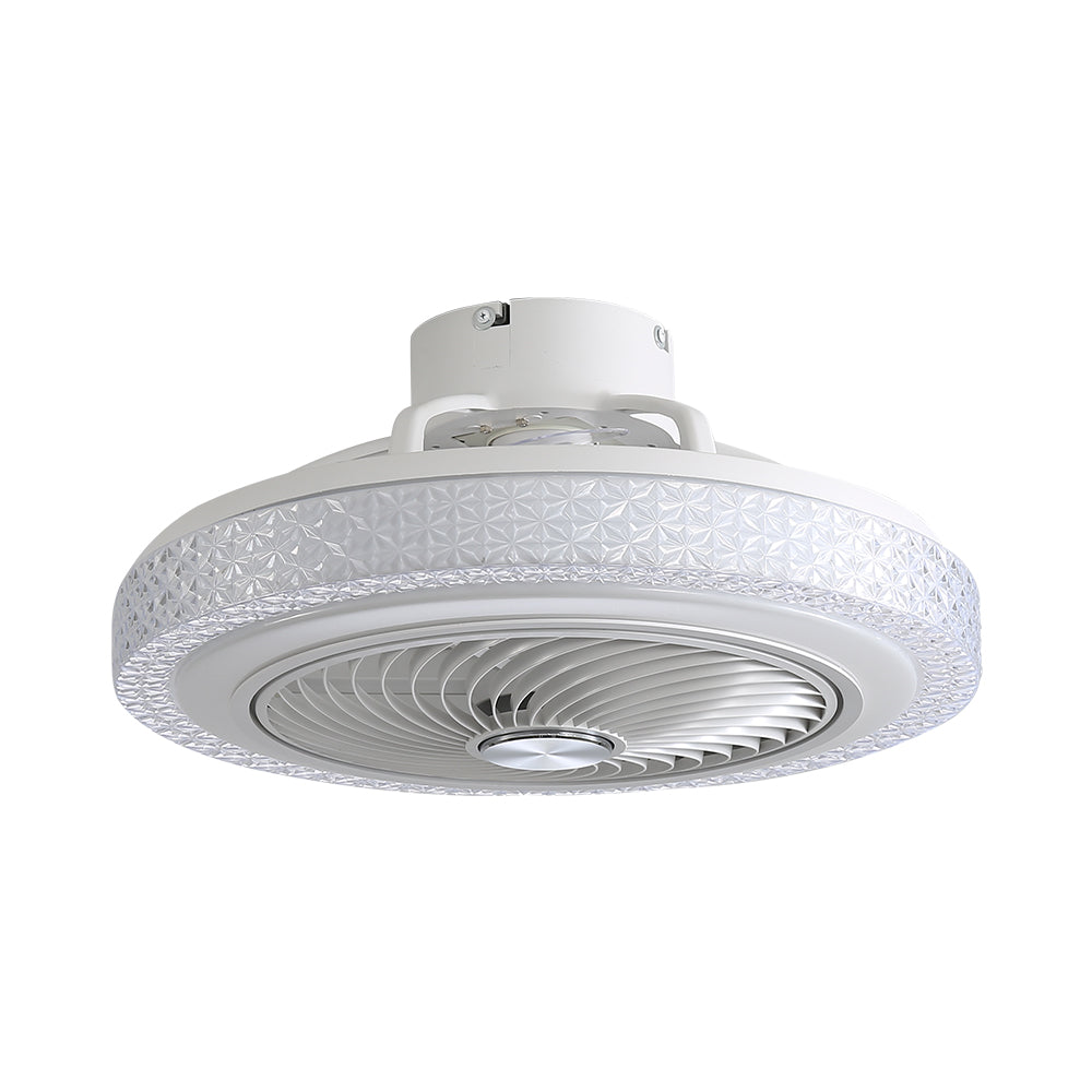 This ceiling fan light seamlessly blends modern aesthetics with practicality. An integrated LED strip offers adjustable brightness and colour temperature, along with 12 RGB lighting options to effortlessly create a variety of atmospheres. The transparent acrylic shade, adorned with sparkling diamond-cut facets, evenly diffuses light, adding a touch of brilliance to any space. For performance, six speed settings paired with an integrated airflow ring ensure whisper-quiet and evenly distributed airflow, while reversible blades provide year-round versatility. Whether in the living room, bedroom, or dining room, it is the perfect choice to elevate the style of any space.