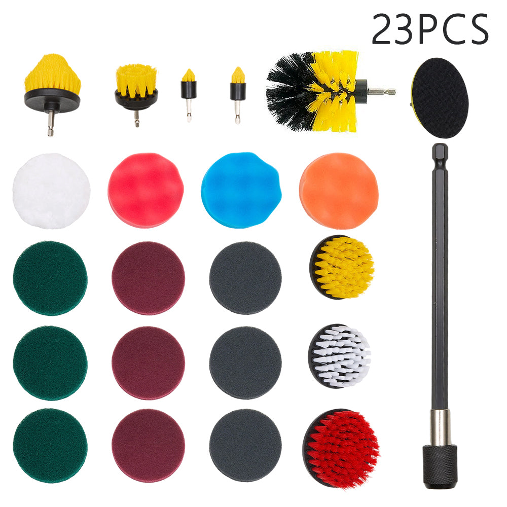 Transform your drill into a powerful cleaning tool with this versatile attachment set. Perfect for tackling stubborn grime in kitchens, bathrooms, and vehicles, these brushes and pads deliver efficiency without the elbow grease. Stiff bristles effectively scrub away tough stains, while included scouring pads polish surfaces like countertops and stoves. An extension rod and tapered brush easily reach tight corners and awkward spaces. Compact, lightweight, and easy to store, this set is the ideal helper for home cleaning, auto detailing, and DIY projects.