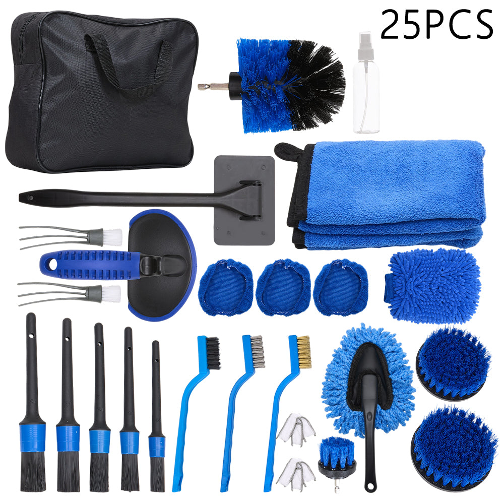 • 25-piece set offers complete coverage for all car cleaning tasks.