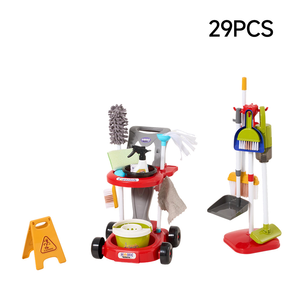 Turn playtime into clean-up time! This toy set empowers your little helper to learn and imagine. The set includes a realistic cleaning trolley, broom, mop, dustpan, brush, cleaning cloth, and spray bottle-—each closely resembling real-life cleaning items. The toy vacuum simulates a real suction effect, "sucking up" tiny particles, while the spray bottle can be filled with water for misting fun. Through imaginative role-play, children can develop fine motor skills, learn cleaning routines, and cultivate a sense of independence.