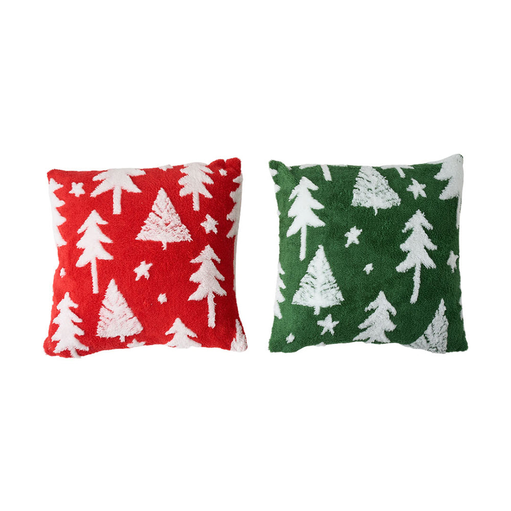 Upgrade your holiday decor with these 2-piece plush Christmas throw pillows. Featuring classic holiday Christmas tree patterns, they bring a warm and festive atmosphere to any space. The red and green colour combo adds vibrant seasonal charm, perfect for holiday styling. Detailed 3D printed patterns offer rich texture and visual depth. Filled with soft, fluffy inserts, the pillows are comfortable to hug and quickly regain their shape after use. With a simple square design, they effortlessly complement sofas, beds, or chairs, adding both style and cosiness to your home.