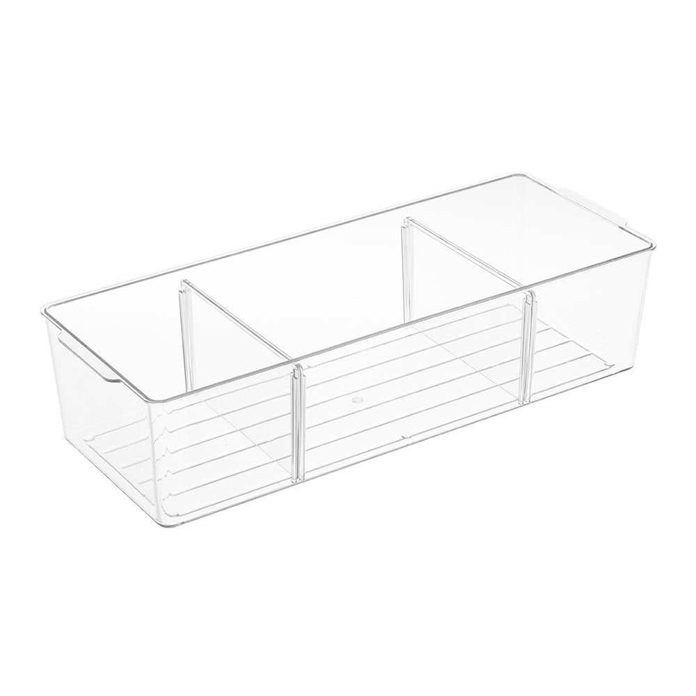 Transform your vanity into a tidy, elegant display with this crystal-clear organiser. Featuring a fully transparent construction, it puts all your makeup, skincare, and small essentials instantly within view. Three smartly divided compartments help categorise products for a streamlined look, turning cluttered countertops into organised beauty stations. It fits effortlessly on dressing tables, in bathrooms, or in bedrooms, offering powerful organisation in a sleek, space-saving form that complements any decor style.