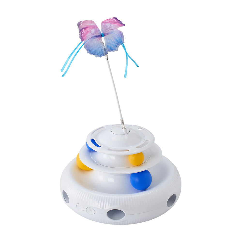 Ignite the natural curiosity of your cat with our 3-in-1 interactive toy! Offering feather, butterfly, and ball modes, it keeps playtime exciting and varied. A quiet motor ensures smooth operation, without startling your pet or disturbing your home. It is incredibly easy to use with two user-friendly buttons, perfect for everyone. Designed with smooth and rounded edges, it is safe for your cat and your furniture. This toy encourages independent play, keeping your feline friend active and engaged, transforming alone time into a fun and enriching adventure.