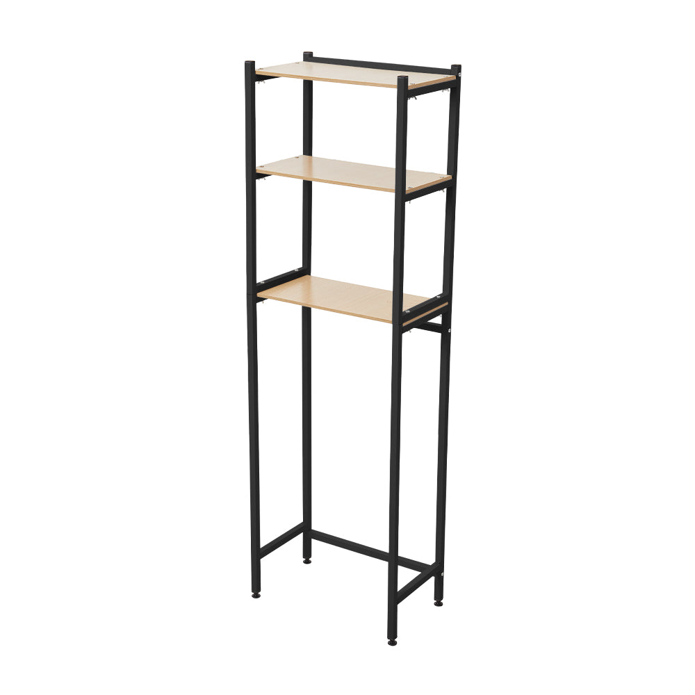 This over-toilet storage rack is a space-saving storage solution. Its minimalist black frame and natural wood shelves blend well with modern decor. With three open storage shelves, it allows you to neatly organise daily essentials like toiletries, helping to keep your bathroom clutter-free. The bottom of the rack provides ample space to stand securely above the toilet, making it especially ideal for compact bathrooms. Beyond the bathroom, it is also perfect for use in balconies, kitchens, or entryways—any space where you need to maximise vertical storage.