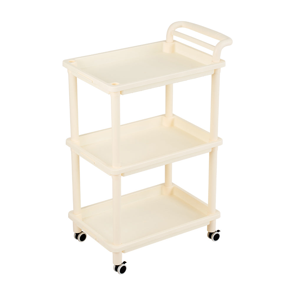 This storage cart is an ideal solution for enhancing space organisation. Its sleek and simple design blends effortlessly into various indoor decors. The three-tier design offers ample spaces, perfect for sorting and storing skincare products, nail tools, or daily essentials to meet diverse storage needs. The top handle provides a comfortable grip, making it easy to push and manoeuvre. Equipped with four wheels, it moves smoothly and can be locked in place for stability. Suitable not only for home use but also widely used in beauty salons and nail studios, it significantly improves storage efficiency and daily convenience.
