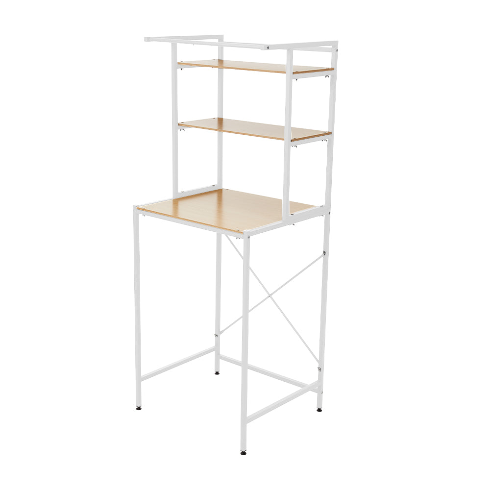 This over-washer-and-dryer storage rack is perfect for small bathrooms. Its minimalist white frame and natural wood shelves blend well with modern decor. Three open tiers let you organise toiletries and essentials, while a convenient top bar allows you to hang towels or hangers for easy access. The spacious bottom ensures a stable placement directly above your washing machine, saving valuable floor space. This versatile rack is also ideal for balconies, kitchens, or entryways—making it a practical solution for enhancing storage efficiency throughout your home.