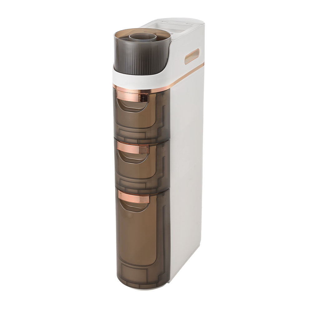 This versatile storage cabinet is designed to maximize your space efficiency. Its compact design offers generous capacity in a minimal footprint and easily slides into tight spaces. The top section integrates a rotating caddy, lidded dual-access tissue box, and a compartment for one-stop convenience. Beneath it, three smooth-gliding drawers provide dedicated space for organizing everyday items. Thanks to the rolling castors at the base, you can move the cabinet effortlessly. It serves as the perfect addition to bedrooms, bathrooms, living rooms, and studies.