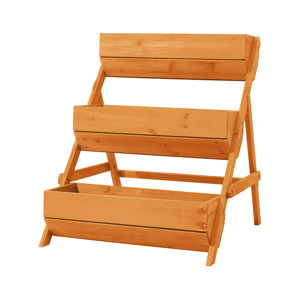 This three-tier plant box combines practicality with natural style. Its warm grain complements modern, rustic, or cottage décor. The tiered design maximises vertical space while providing three separate compartments for growing herbs, vegetables, flowers, or fruits. Ideal for balconies, patios, gardens, or indoor corners, it adds greenery without taking up much space. A sturdy triangular frame ensures excellent stability, helping to prevent tipping, even in breezy conditions. Smoothly sanded surfaces are splinter-free and comfortable to handle. Supplied with all necessary fittings, the simple structure allows quick and easy assembly so you can start planting right away.