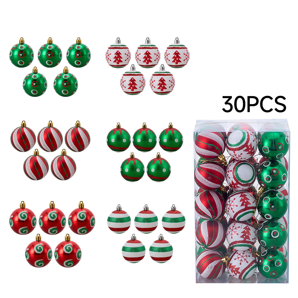 This 30-piece Christmas ornament set adds elegance and festive cheer to your holiday decor. With ample pieces for decorating your Christmas tree or other scenes, it meets a wide range of styling needs. The set includes an assortment of beautifully finished spherical ornaments, enhancing visual depth and decorative richness. Featuring the classic festival colour scheme, it evokes joy and luxury, creating a warm and vibrant Christmas atmosphere. Perfect for adorning your tree or mantel, this set makes it easy to craft a magical holiday setting.