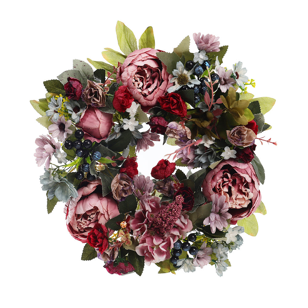 Add a touch of timeless elegance to your home with this stunningly realistic and vintage-style peony wreath. Meticulously crafted with delicate faux peonies in soft and romantic shades, it features rich, plump berries and foliage for a truly authentic look. The arrangement is expertly fixed onto a natural rattan ring, creating a beautiful rustic texture. Whether hung on your front door to welcome guests or used as a charming centrepiece for weddings and festive gatherings, its lush, classical beauty will effortlessly warm any space. A truly enchanting piece!