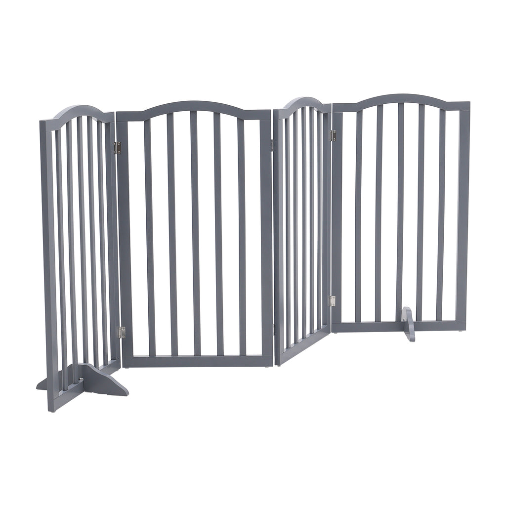 This safety gate is perfect for modern homes with its pure grey finish and elegant arched top design, blending safety with aesthetics. The vertical bars on each panel are spaced appropriately to effectively prevent kids or pets from passing through. Reinforced metal hinges at the joints make the entire structure more stable and secure. Additionally, it comes with non-slip pads and two triangular support feet at the bottom to protect the floor from scratches and enhance stability. Ideal for stairways, doorways, or room sections, it safely restricts pet movements and provides a secure play area for children.