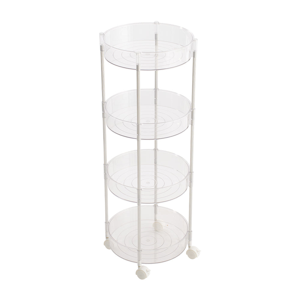 This four-tier transparent storage cart combines practicality and aesthetic appeal, making it a perfect fit for any modern home. Constructed from durable plastic and aluminum support tubes, it is sturdy and boasts a strong weight capacity. Its four-tier design offers ample space for your everyday storage needs, while the raised edges ensure items remain securely in place when the cart is moved. With quick, tool-free assembly, setup is effortless. Ideal for use in the kitchen, bathroom, living room, or bedroom, it helps maintain an organized and tidy home.