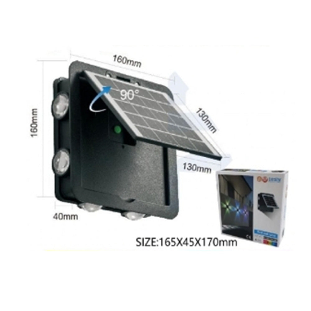 Add a festive glow to your outdoor spaces with this LED Solar-Powered RGB Wall Lamp, perfect for themed decorations during Halloween, Christmas, and year-round garden lighting. This energy-efficient solar lamp illuminates in 4 directions with stunning RGB lighting effects. With 9 adjustable modes and brightness levels, you can customise the atmosphere to suit any occasion.