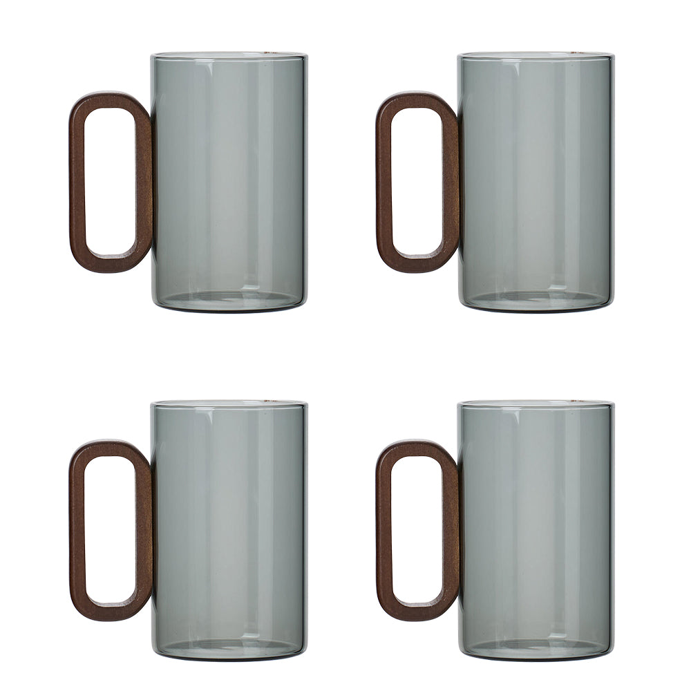 Elevate your coffee or tea moments with this 4-piece mug set. Featuring a sleek Nordic design, the smoky grey body pairs beautifully with a dark wood handle, offering a modern yet natural aesthetic. Each cup holds 360 ml—perfect for daily water, coffee, tea, and more. The transparent glass showcases the colour and appearance of your drinks for an added visual delight. Made from high-strength borosilicate glass, it resists thermal shock and is highly durable against cracking from temperature changes. The wooden handle ensures a comfortable grip and excellent heat insulation, making it safe and easy to hold even with hot beverages.