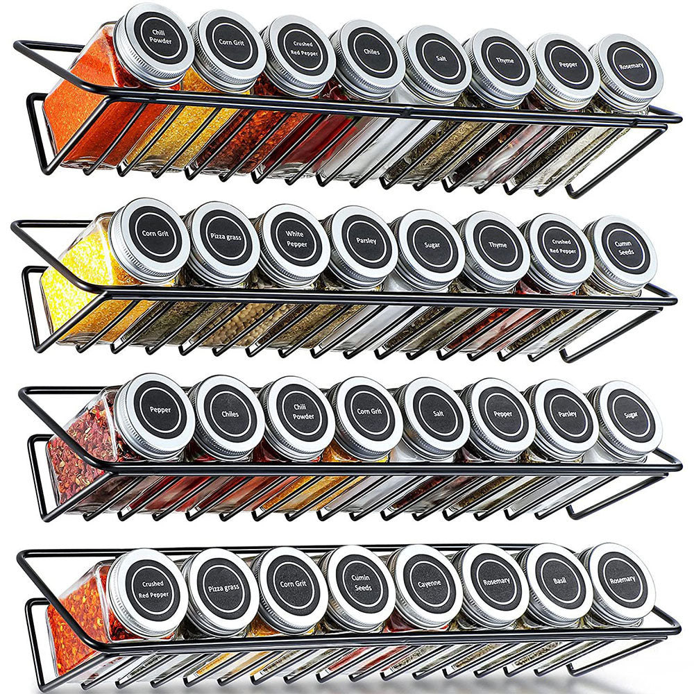 This 4-piece spice rack set is the ideal solution for kitchen organisation. It features a four-tier angled rack design that neatly organises various seasoning bottles for easy access. The open design allows quick visibility, so you can identify spices at a glance and avoid the hassle of searching. The racks are modular and can be arranged flexibly to fit different kitchen spaces. It comes with adhesive hooks and a screw mounting kit, allowing you to choose installation methods based on your needs. Compatible with common glass jars and plastic bottles for salt, sugar, pepper, and more, it is a must-have for an efficient and tidy home kitchen.