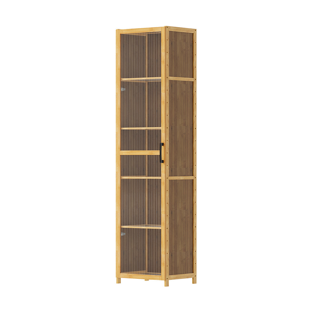 This multi-functional bookcase is an ideal choice for home living. Featuring a five-tier design, it offers ample storage space for organising books, ornaments, and other items neatly. With adjustable layer heights through pre-drilled holes and detachable shelves, it accommodates items of various sizes. Equipped with an acrylic door, it ensures durability, dustproof protection and keeps the contents tidy. The hydraulic hinges paired with aluminium alloy handles ensure smooth opening and closing while reducing noise. Moreover, the elevated base design effectively prevents moisture and mould damage to stored items.