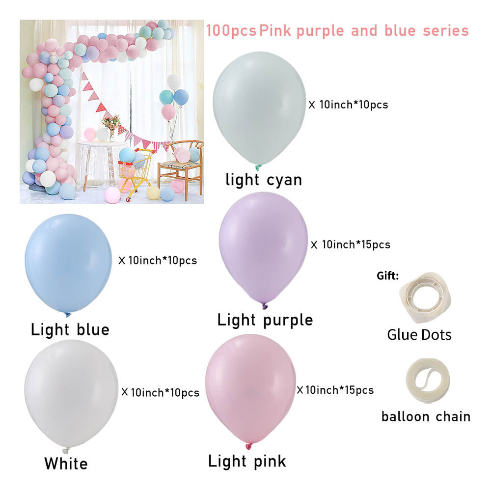 Balloon Colour: Light Cyan(10pcs)/Light Blue(10pcs)/Light Purple(15pcs)/White(10pcs)/Light Pink(15pcs)