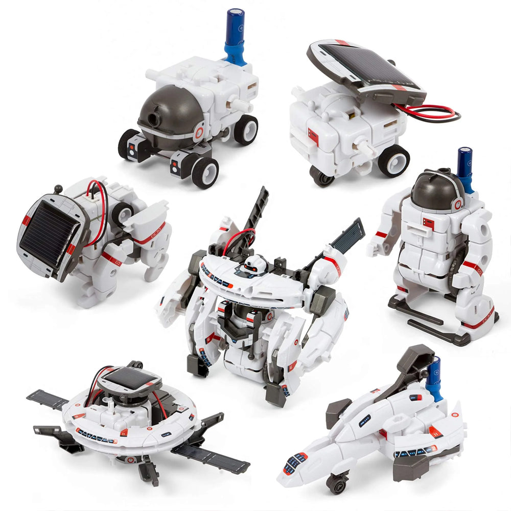 To ignite the dreams of children of space exploration, we present this solar robot toys kit. Featuring a 7-in-1 design, it allows children to build seven different solar-powered robots, including a space station, a space shuttle, an astronaut, etc., sparking their enthusiasm for cosmic adventures while offering hands-on learning opportunities. Through DIY assembly, children can learn basic mechanics and engineering skills, develop manual dexterity and logical thinking, and enhance their problem-solving abilities. Additionally, with dual power supply modes—solar and battery—children can enjoy playing games both indoors and outdoors, ensuring endless fun and educational engagement.