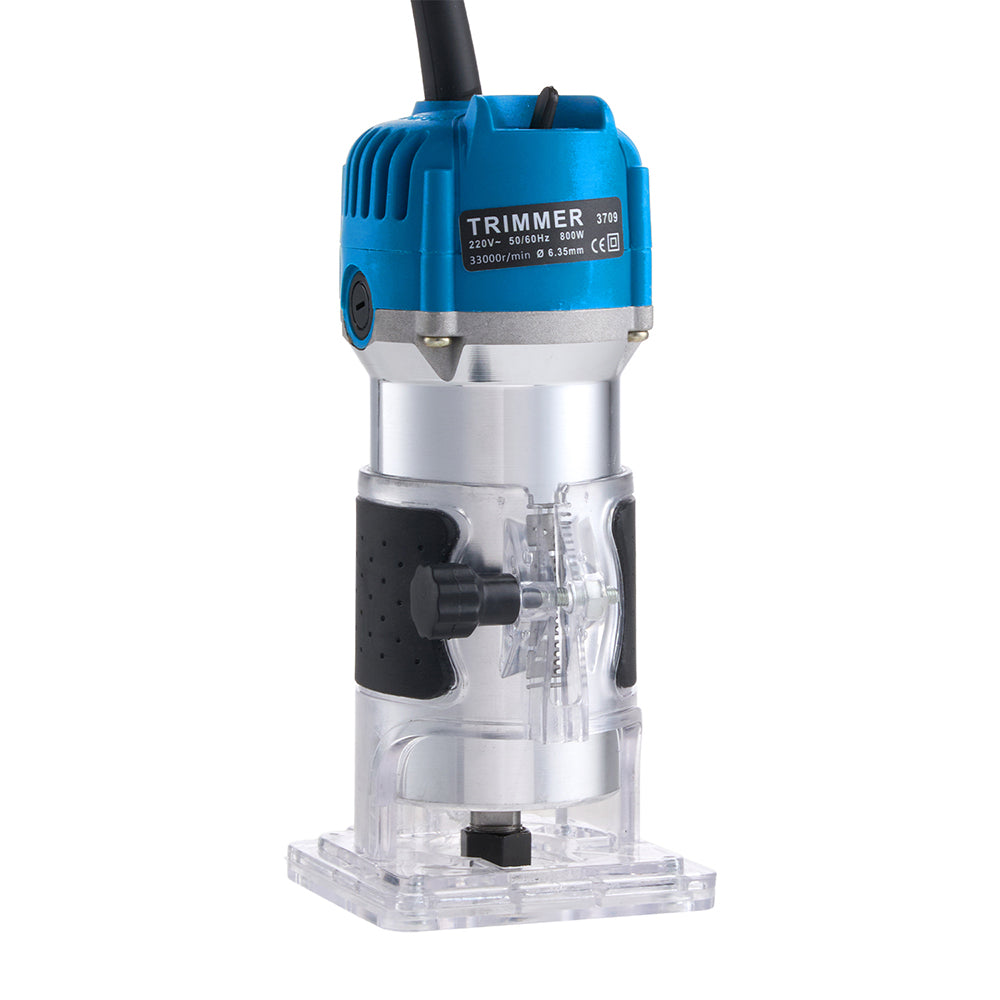 Professional, efficient, and precise, this 800W electric wood router delivers powerful performance with its motor featuring copper windings, effortlessly handling demanding woodworking tasks. The hardened steel collet ensures secure bit clamping and quick tool changes, while the durable aluminium alloy body enhances stability and impact resistance. Integrated depth markings and a transparent base provide accurate, visible guidance for precise control. A simple toggle switch enables easy operation, and built-in overload protection helps prevent motor burnout. Efficient ventilation promotes heat dissipation, ensuring reliable, long-term performance in any workshop.