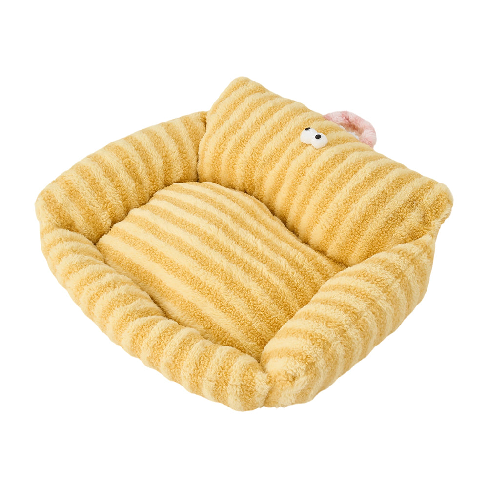 This pet sofa bed is designed to provide your pets with a comfortable sleep experience. Featuring a fresh-colour striped pattern and two playful little eyes, its adorable design adds a fun touch to your home. The surface is made of soft plush material, ensuring a gentle touch against the skin and providing warmth, ideal for winter comfort. Filled with PP cotton, it delivers appropriate support and retains its shape even after extended use. Additionally, the raised edges around the bed not only give pets a sense of security but also effectively support their head and neck.