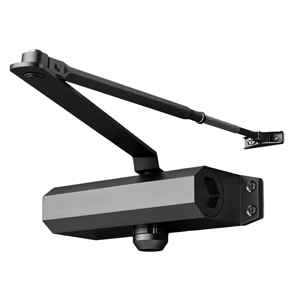 Merge robust performance with timeless design using this automatic door closer! It delivers a modern, compact profile that fits seamlessly into any interior. Designed to support doors within its weight range, it suits single doors in homes, offices, and hotels alike. Two precision adjustment valves let you fine-tune closing speed and latching speed for reliable operation. Its reversible design works with left- or right-handed doors without modifications. Compact and lightweight, it installs easily and closes doors dependably, time after time.