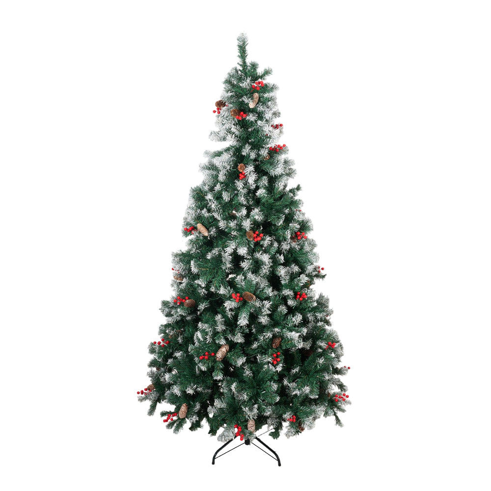 This exquisite artificial Christmas tree brings the magic of the holiday into your home. Meticulously designed to mimic the beauty of a snow-covered pine, it presents a natural and elegant appearance. Layered branches and evenly distributed tips create a full and well-balanced silhouette, adorned with lifelike pinecones and red berries that evoke the atmosphere of a winter forest. Whether placed in your home, office, or store, this tree is sure to become a captivating focal point of the festive celebrations.