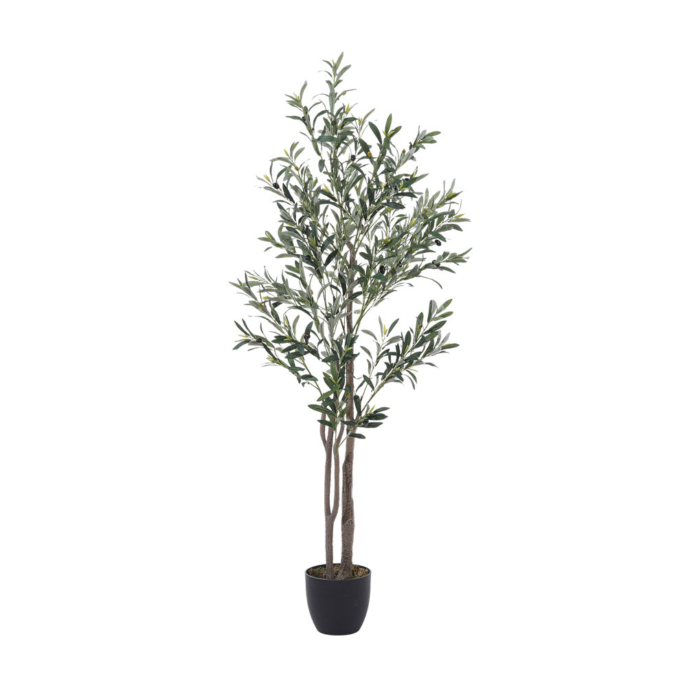 Bring a touch of Mediterranean charm to your home with this 165cm tall artificial olive tree. Its slender trunk and delicate leaves, adorned with fruity olives, evoke the warmth of a sunny summer day. Perfect for decorating your bedroom, doorway, or living room, this tree creates a cozy atmosphere without the need for watering, fertilizing, or cleaning up fallen leaves and fruits. Enjoy its lush greenery year-round with minimal effort.