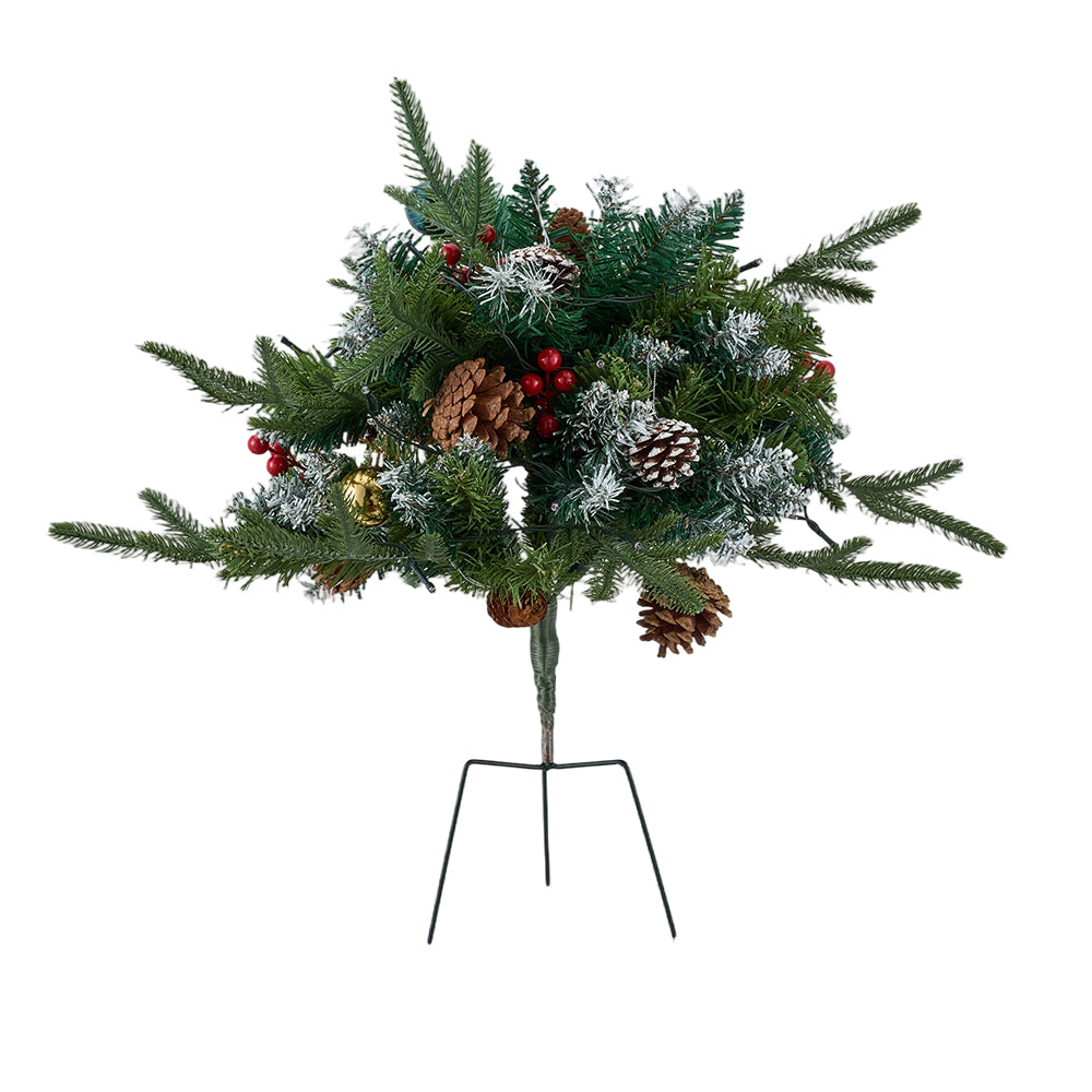 This Christmas planter bush decoration set is a holiday essential that combines style and functionality. Featuring a naturally mushroom-shaped design, its layered branches create a three-dimensional look, resembling a blooming festive bouquet. The foliage blends deep green and frosted white tones, evoking a wintry snow-covered scene. Decorative elements like berry clusters and pinecones are evenly distributed throughout for enhanced visual appeal. It also features built-in LED lights with 8 lighting modes, allowing you to customise the ambiance. Compact and space-saving, it is ideal for outdoor use in gardens, patios, doorways, and porches, making it an ideal choice for Christmas decoration.