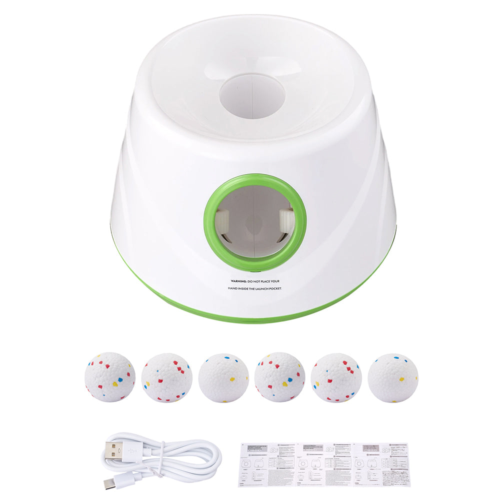 Make every game of fetch effortless and exciting with this automatic ball launcher for small to medium dogs. Made from pet-safe, non-toxic materials, it ensures safe, worry-free play. The simple controls and auto-launch keep the fun continuous—just drop in a ball and play. The non-slip base adds stability, and durable, high-rebound ETPU balls resist chewing. Compact and stylish in white with lime accents, it fits easily at home or outdoors, helping keep dogs active, mentally stimulated, and thoroughly exercised every day.