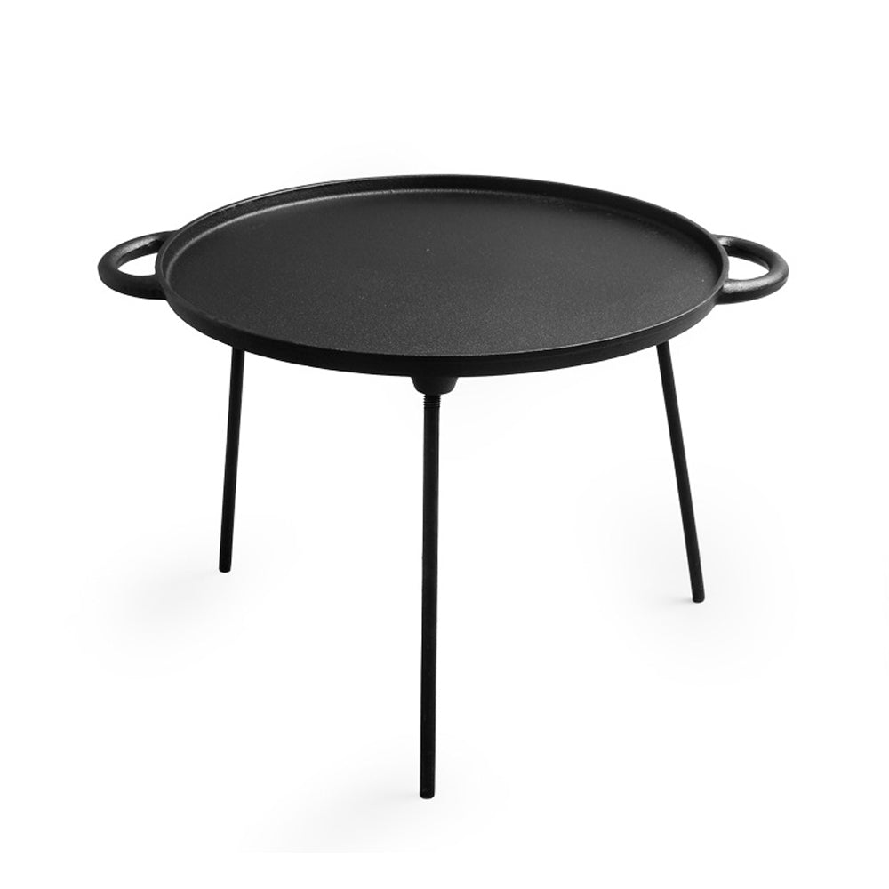 This cast iron griddle pan is ideal for home and outdoor cooking. Its large, flat circular surface offers ample space for searing steaks, making pancakes, roasting vegetables, and more—ideal for serving multiple people at once. The thick cast iron construction ensures even heat distribution and excellent heat retention, preventing hot spots and burning while locking in flavour. Sturdy curved handles on both sides provide a secure, comfortable grip for safe handling. Three detachable legs offer stable support, allowing direct use over charcoal without a stove—great for camping or backyard barbecues. Compatible with gas, electric, and induction cooktops and open flame, it brings delicious meals anywhere.