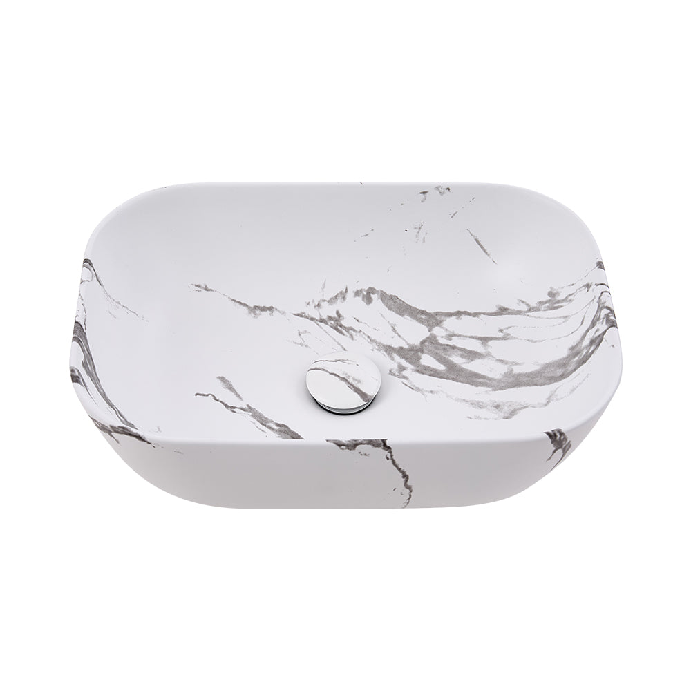 Discover timeless elegance with this superior ceramic basin. Expertly finished with a vivid, natural marble-effect glaze, it brings instant luxury. Built tough with a thickened design, it is highly resistant to cracking for years of reliable use. Its sleek, simple shape blends seamlessly into modern, Scandi, or contemporary settings. It includes a quality waste kit ensuring smooth, sealed drainage—say goodbye to leaks and lingering smells! Perfect for updating any home bathroom, kitchen, or hospitality venue with sophistication and practicality.