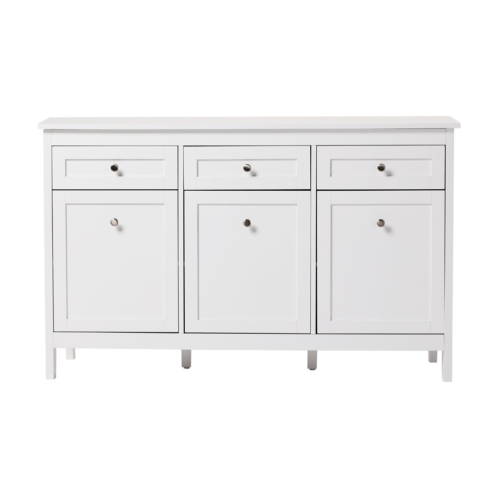 As one of the most eye-catching cabinets in the White Classic Series, this cabinet brings timeless style to your space. Its clean and white finish embodies elegance and modernity, making it a delightful addition to any room. With three spacious drawers and three cabinets, it offers ample storage to keep your space clutter-free. Crafted from high-quality particle board, this cabinet is strong, sturdy, and designed to support heavy loads. Beautiful and practical, it seamlessly fits into any décor.