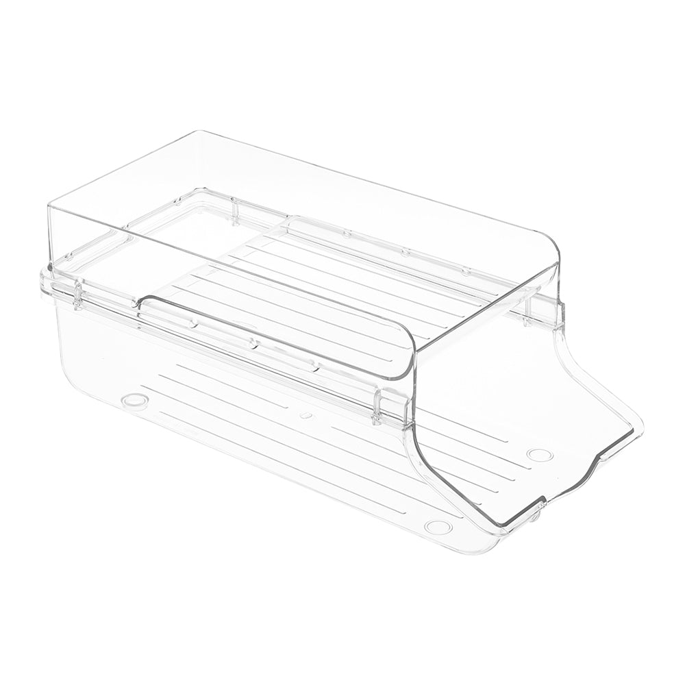 This soda can dispenser provides a practical solution for keeping your refrigerator neatly organized. Specially designed for centralized beverage storage, its dual-layer structure efficiently accommodates soda cans, vegetable cans, ketchup bottles, and other canned goods. The unique sloped design allows beverage cans to automatically roll forward to the pickup position, while the raised front edge and side walls prevent them from sliding out. With straight sides that fit snugly against other storage containers, it maximizes space utilization. Ideal for refrigerator compartments, freezers, kitchen countertops, and pantries, this dispenser offers a convenient storage solution.