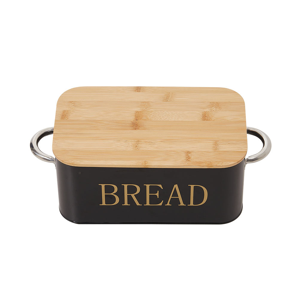 This bread box is an ideal storage solution for the modern kitchen. Its sleek design combines a black metal body with a natural bamboo lid, offering both visual appeal and functionality. The spacious interior easily holds toast, pastries, doughnuts, cookies, and more—perfect for everyday family use. The bamboo lid features a clear grain, seals tightly to keep dust out, and doubles as a cutting board for convenient bread slicing. Most importantly, multiple ventilation holes inside the box promote airflow, prevent moisture buildup, and help keep baked goods fresh.