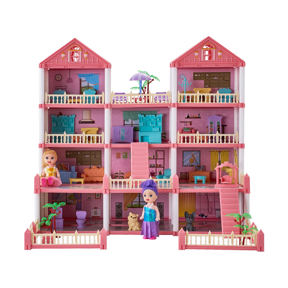 Treat your child to this enchanting four-story dollhouse playset! Its sturdy, soft-pink construction creates a beautiful fairy-tale atmosphere. Spanning four floors with multiple distinct rooms—from kitchens to studies—it encourages rich imaginative play about home life. Featuring balconies for accessories and easy staircases, movement is simple. The set includes charming Barbie dolls and extensive furniture, letting kids mix and match scenes freely. Ideal for ages three and up, it fosters creativity and learning through delightful role-playing adventures.