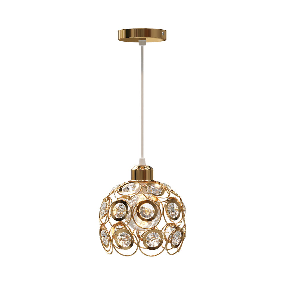More than a light source, this pendant light is a statement of refined design. Its golden-toned iron frame, set with clear glass pieces, exudes timeless elegance. The openwork structure enhances light diffusion, creating a balance of radiant warmth and subtle opulence. When illuminated, the glass pieces sparkle brilliantly, casting soft glimmers across the room. Perfect for living rooms, bedrooms, or dining areas, this pendant unites artistry and function, serving as a sophisticated focal point that elevates both modern and classic interiors.