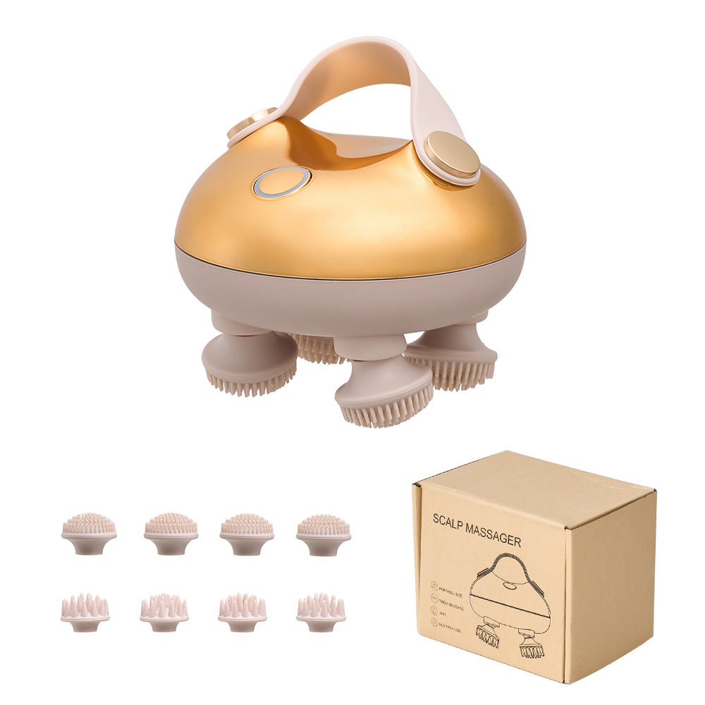 Unwind after a long day with our versatile electric scalp massager, designed to deeply relax your scalp and boost circulation. It comes complete with eight interchangeable heads to tailor your head care perfectly. The ergonomic design cups your head for a truly comprehensive massage experience. Use it wet whilst shampooing to gently cleanse, or dry for on-the-spot stress relief anytime. Featuring three smart modes that mimic professional kneading, it effectively soothes headaches and eases tension. Lightweight and simple to operate, it offers a blissful, spa-like escape whenever you need it most.
