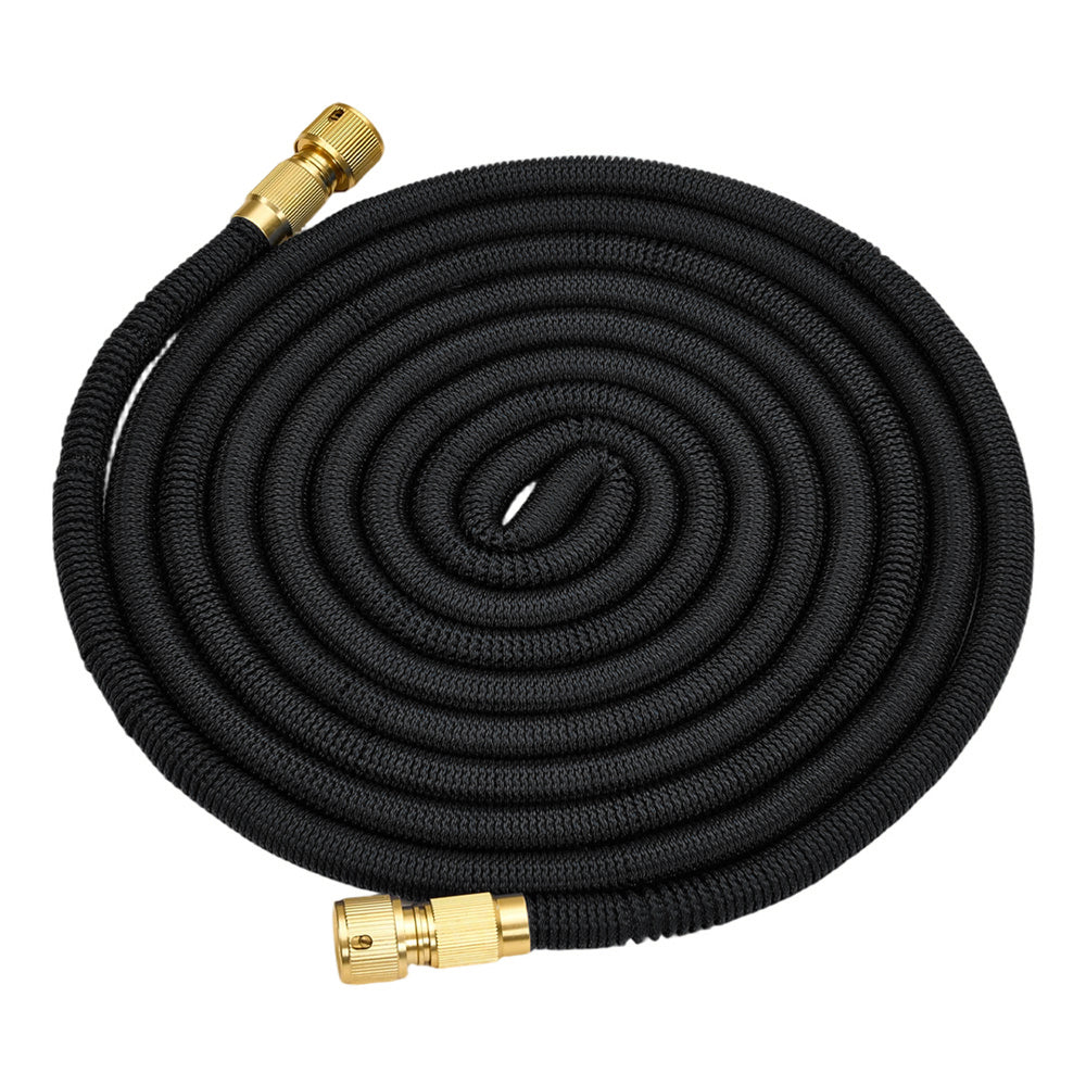 This flexible, kink-free garden hose ensures smooth water flow and easy handling. Built with durable brass connectors, it delivers a secure, leak-resistant seal for lasting performance. Its smart expand-and-retract design extends up to three times its length for maximum reach, then contracts automatically back to a compact size for effortless storage. Lightweight and portable, it eliminates the need for bulky reels or hooks, making it perfect for gardens, cars, patios, or outdoor cleaning. A space-saving, reliable solution for all your watering needs.