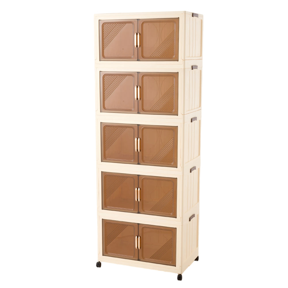 This storage cabinet combines practicality and style, making it an ideal choice for home organisation. Featuring a spacious multi-tier design, it allows you to neatly sort and store clothes, toys, books, and more, keeping everything tidy and easily accessible. Each drawer comes with magnetic closures and dual handles for convenient opening and closing. Sturdy side latches enable secure stacking of multiple units without wobbling or tipping. Plus, built-in casters let you effortlessly move it around—perfect for living rooms, bedrooms, and beyond.