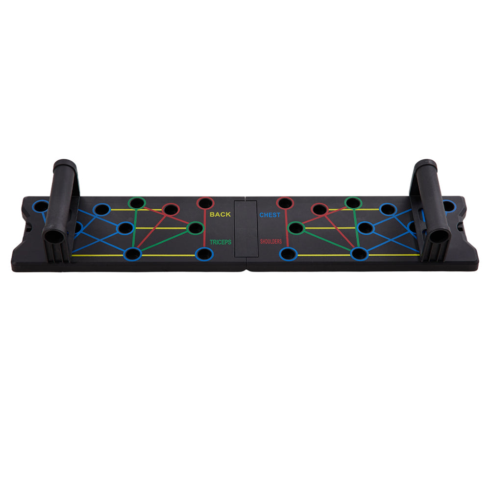 Eliminate workout guesswork with a science-based push-up board that turns every rep into targeted training. Four colour-coded zones guide you to 15 precise hand positions to activate chest, shoulders, lats, and deltoids for balanced upper-body development. Ergonomic, elevated handles reduce wrist and shoulder strain, while non-slip grips improve comfort and control. A non-slip base keeps the board stable on any surface. Just unfold, place, and train—setup is instant and intuitive. Ideal for beginners and experienced users alike, it delivers pro-level structure to every session.