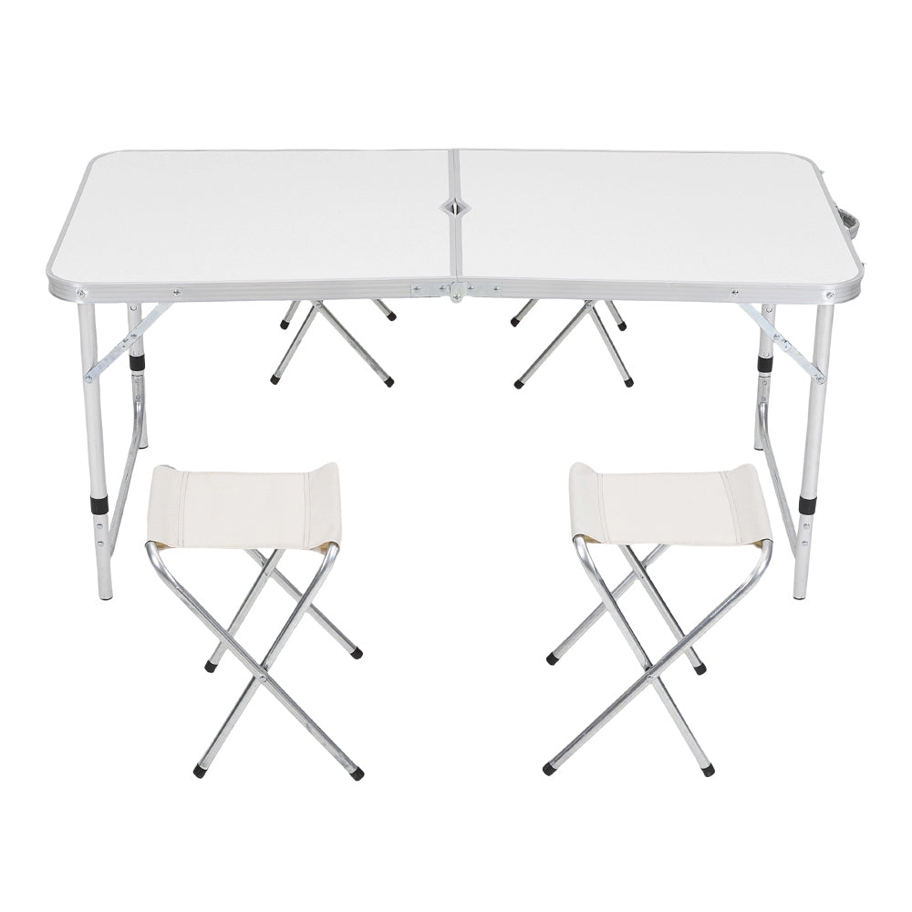 Love getting outdoors? Your perfect dining set has arrived. This complete set comes with a spacious folding table and four comfy stools, all designed for easy transport. Setting up camp is a breeze as everything unfolds in seconds, giving you more time to relax. The sturdy table easily holds your feast, from plates and drinks to a portable BBQ. It is ideal for everything from a family picnic to your next fishing trip. So, pack it in the car boot and get ready for a wonderfully comfortable and convenient outdoor experience.