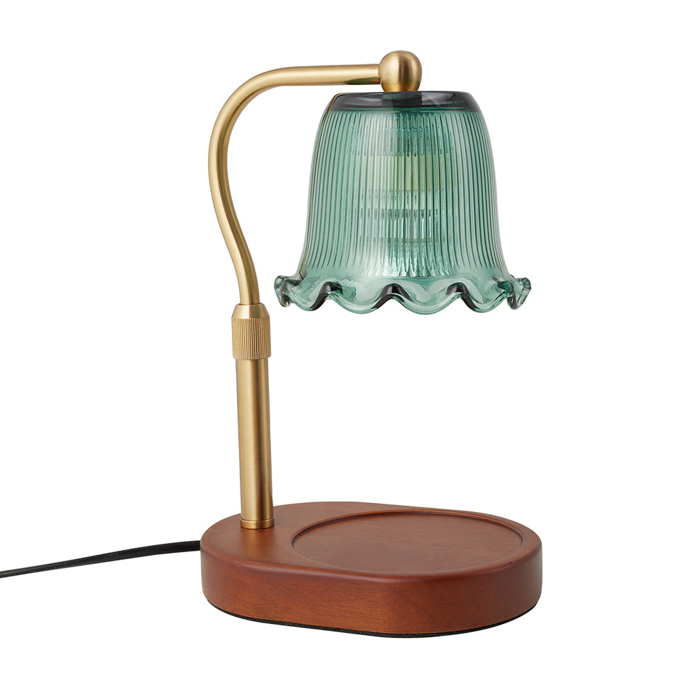 This candle warmer lamp features an elegant design with a vintage-inspired flower-shaped green glass lampshade, creating a cosy ambiance. The body is made from metal materials, offering durability with anti-corrosion properties. Its uniqueness lies in the ability to work in conjunction with scented candles, utilising the heat from the bulb to melt the candle and create an aromatic and healing atmosphere. The adjustable height feature allows users to flexibly modify the lamp height according to their needs, accommodating various candle sizes. Not only can it be used for melting scented candles, but it also serves as a regular table lamp suitable for reading or relaxing, providing convenience to your life.