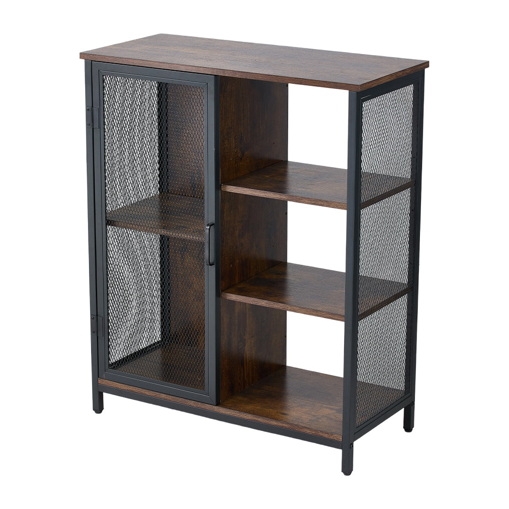 This sideboard combines aesthetic appeal with practical functionality. Featuring a vintage dark wood finish paired with a black metal frame, it offers a classic and elegant look that complements various interior styles. The spacious tabletop and adjustable interior shelves provide ample storage for dinnerware, drinks, and more. The metal mesh door panels enhance ventilation while adding an industrial-chic touch to the design. A magnetic closure mechanism, combined with a practical handle, ensures smooth and effortless opening and closing. Perfect as a buffet, console table, or entryway cabinet, it fits seamlessly into dining rooms, living rooms, or hallways.