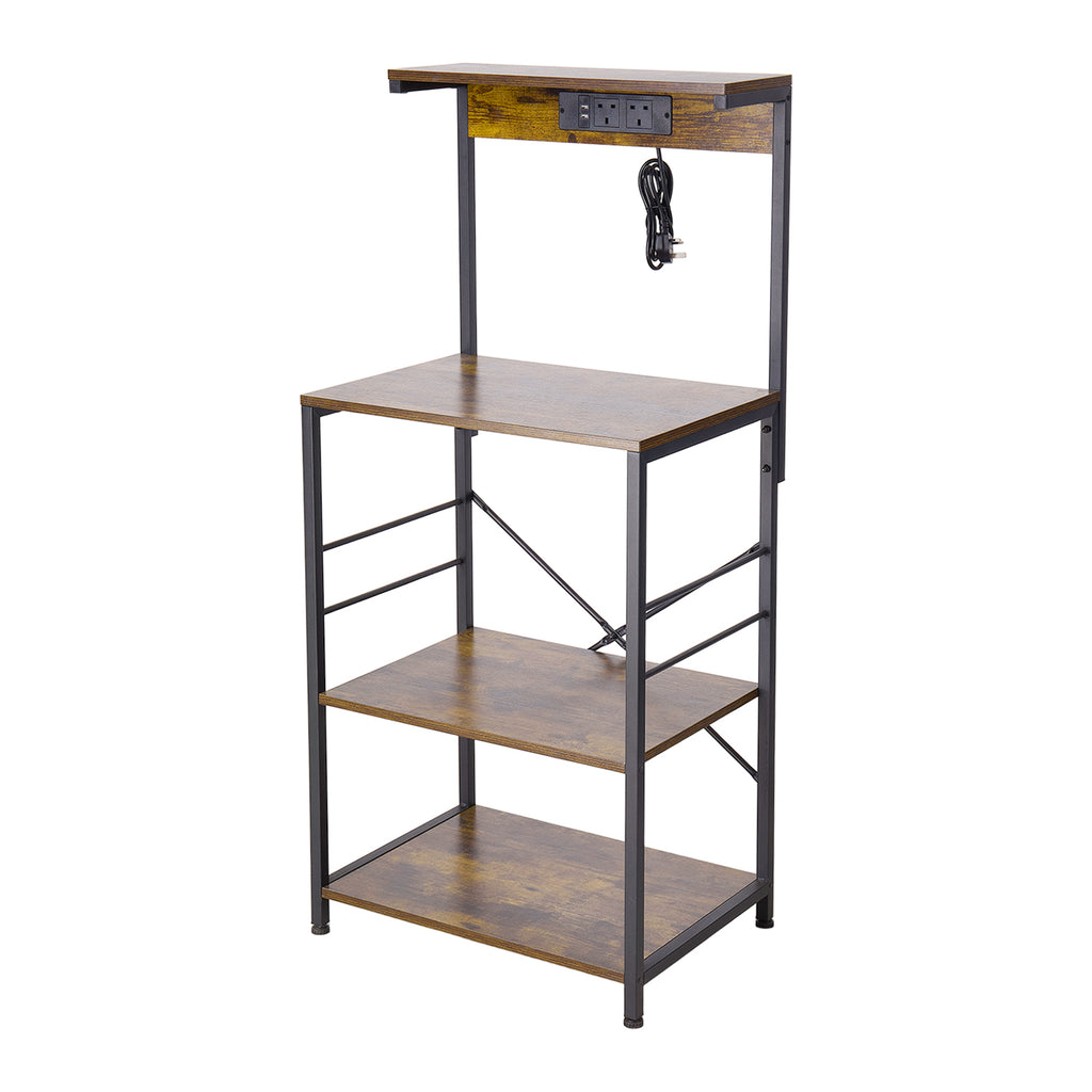 This microwave stand is the ideal choice for your kitchen storage. Its retro wooden finish and black metal frame create a nostalgic atmosphere. The multi-tiered shelf design allows you to neatly organise your microwave, coffee machine, spice bottles, and other kitchen essentials. The top shelf features an integrated charging station, making it convenient to power multiple small appliances at once. Plus, the sturdy metal frame ensures overall stability and safe use. It is not just a microwave stand—it is a versatile storage or display unit for your kitchen.